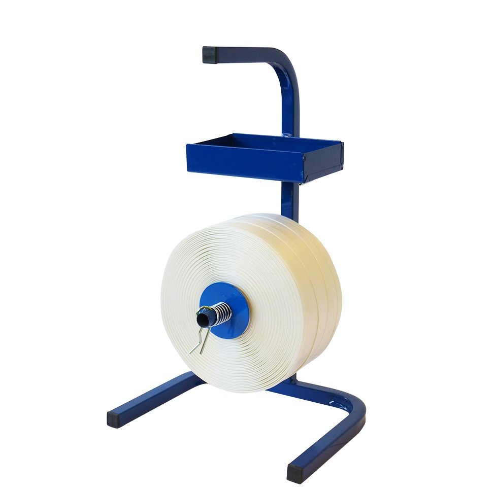 Deze kleine draagbare haspel is geschikt voor rollen Polyesterband, textielband en PE band met een kern van 76 mm. Deze solide blauwe metalen rolhouder voor omsnoeringsband heeft een handig bakje voor de gespen en de bandspanner. De stevige haspel is compact, gebruiksvriendelijk en handig.